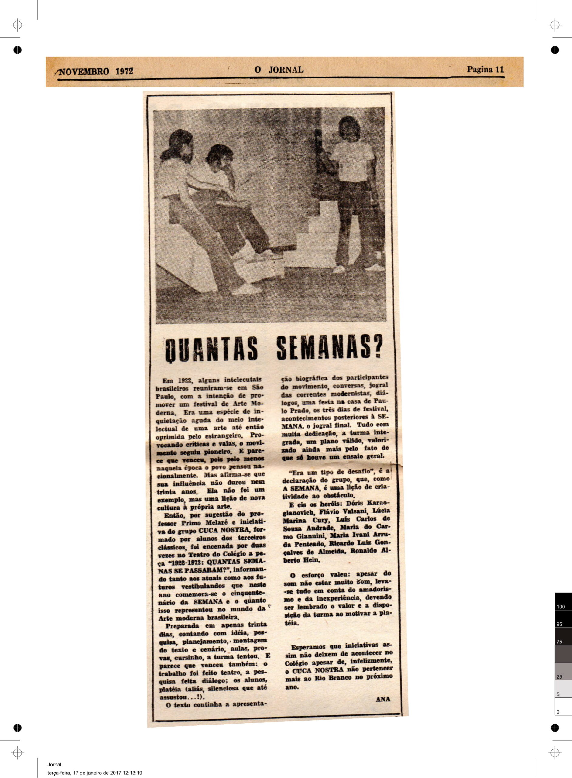 - O teatro é meu segundo amor, depois da poesia, graças ao espetáculo “Navalha na Carne” de Plínio Marcos no Teatro Oficina no final dos anos de 1960. Foi no Colégio Rio Branco que comecei a exercer a dramaturgia, ao escrever, dirigir e atuar em duas peças em 1972: a primeira, chamada “Recado”, apresentava a situação de um homem de hoje que, ao entrar numa livraria, passava a ouvir e conversar com as vozes dos grandes filósofos gregos; a segunda, batizada de “1922-1972: Quantas semanas se passaram?”, mostrava a saga da Semana de Arte Moderna de 1922.